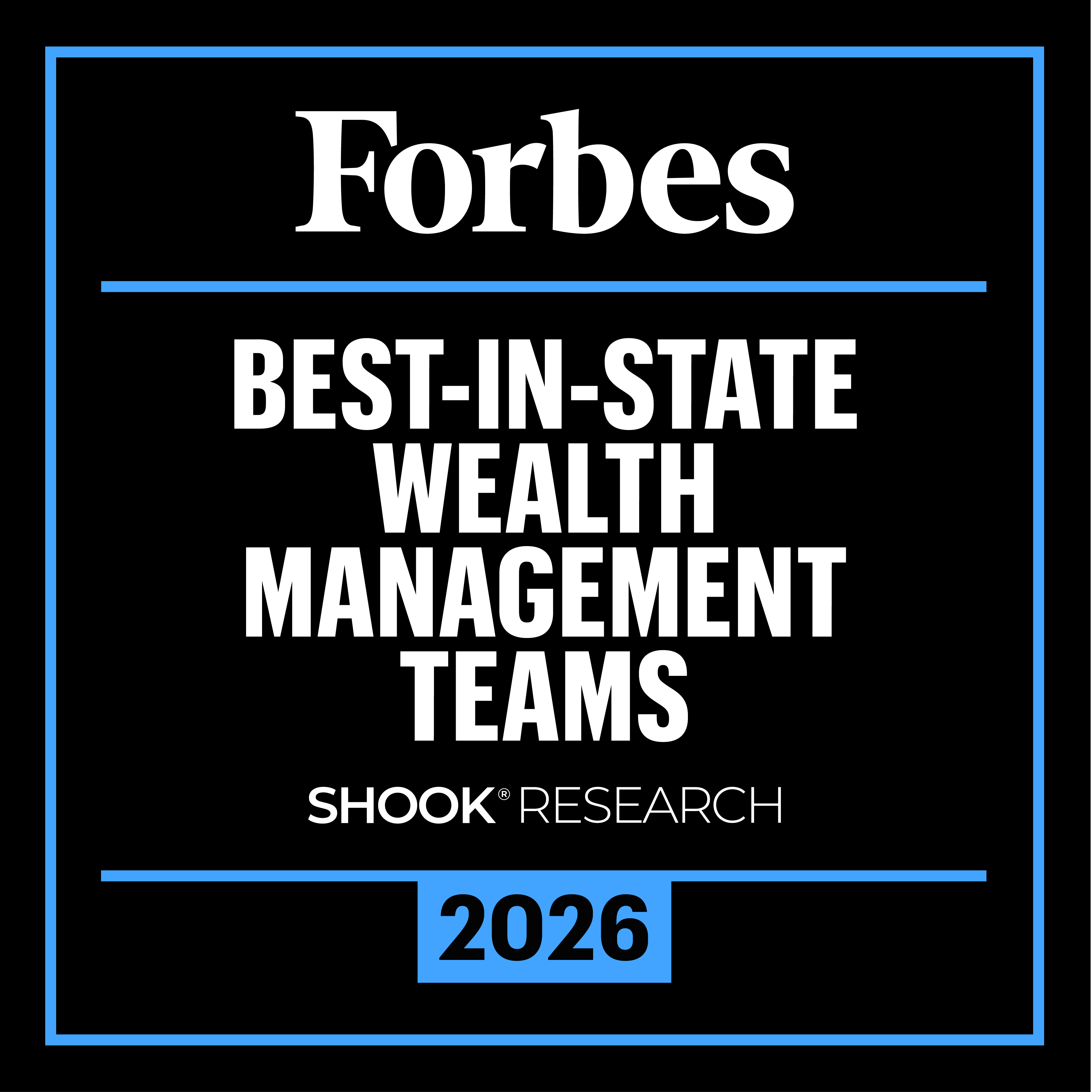 2 2026 Forbes Best-in-State Wealth Management Teams: Awarded January 2026; Data compiled by SHOOK Research LLC based on the time period from 3/31/24 - 3/31/25 (Source: https://www.forbes.com/lists/wealth-management-teams -best-in-state/). 2025 Forbes Best-in-State Wealth Management Teams: Awarded January 2025; Data compiled by SHOOK Research LLC based on the time period from 3/31/23 - 3/31/24. 2024 Forbes Best-in-State Wealth Management Teams: Awarded January 2024; Data compiled by SHOOK Research LLC based on the time period from 3/31/22 - 3/31/23. 2023 Forbes Best-in-State Wealth Management Teams: Awarded January 2023; Data compiled by SHOOK Research LLC based on the time period from 3/31/21 - 3/31/22 (Source: Forbes.com). The Forbes Best-in-State Wealth Management Teams rating algorithm is based on the previous year's industry experience, interviews, compliance records, assets under management (variable by state), revenue and other criteria by SHOOK Research, LLC. Investment performance is not a criterion. Self-completed survey was used for rating. Fee paid for use of marketing materials. This rating is not related to the quality of the investment advice and based solely on the disclosed criteria. 12,787 wealth management teams were considered for the rating; 6,149 (48% of candidates) were named 2026 Forbes Best-in-State Wealth Management Teams.