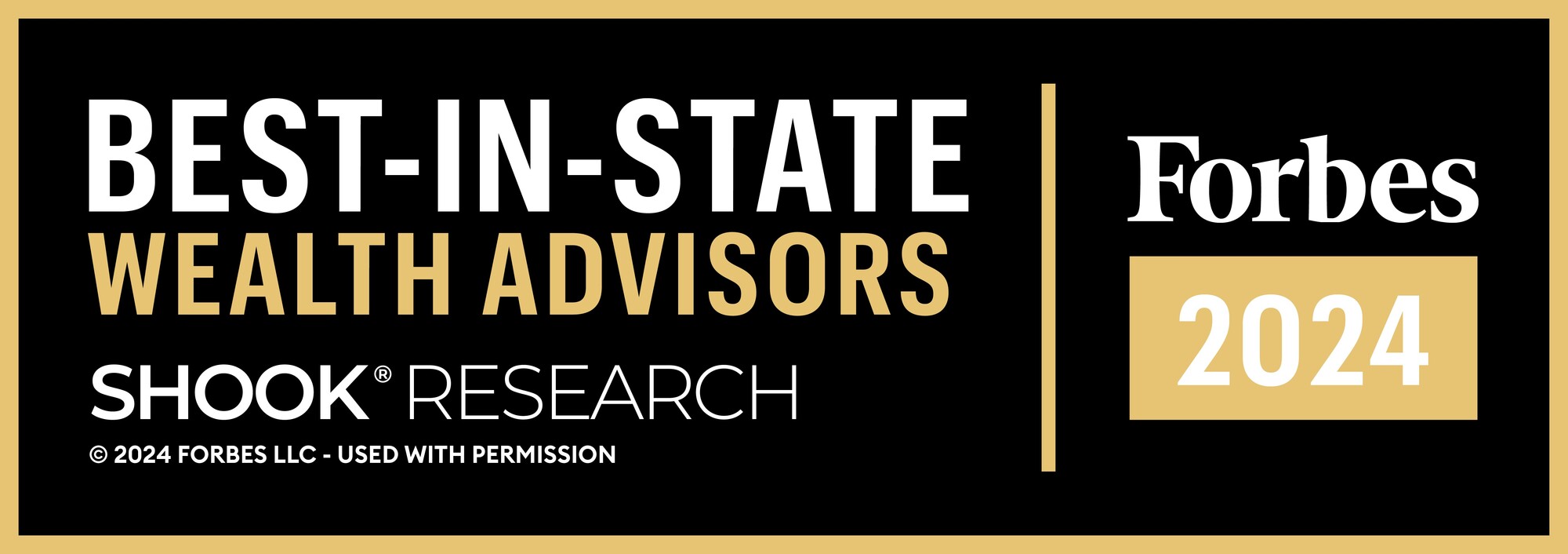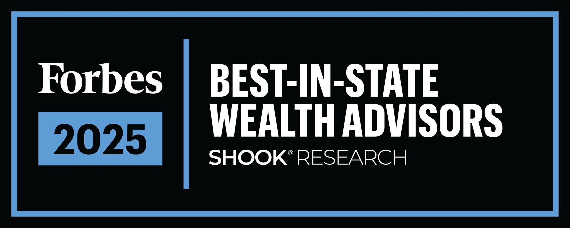 2025 Forbes Best-In-State Wealth Advisors; Awarded April 2025; Data compiled by SHOOK Research LLC based on the time period from 6/30/23- 6/30/24 (Source: https://www.forbes.com/lists/best-in-state-wealth-advisors/). 2024 Forbes Best-In-State Wealth Advisors: Awarded April 2024; Data compiled by SHOOK Research LLC based on the time period from 6/30/22-6/30/23 (Forbes.com). 2023 Forbes Best-In-State Wealth Advisors: Awarded April 2023; Data compiled by SHOOK Research LLC based on the time period from 6/30/21 - 6/30/22 (Source: Forbes.com). 2022 Forbes Best-In-State Wealth Advisors: Awarded April 2022; Data compiled by SHOOK Research LLC based on the time period from 6/30/20 - 6/30/21 (Source: Forbes.com). 2021 Forbes Best-In-State Wealth Advisors: Awarded February 2021; Data compiled by SHOOK Research LLC based on the time period from 6/30/19 - 6/30/20 (Source: Forbes.com). The Forbes Best-in-State Wealth Advisors rating algorithm is based on the previous year's industry experience, interviews, compliance records, assets under management, revenue, and other criteria by SHOOK Research, LLC. Investment performance is not a criterion. Self-completed survey was used for rating. Fee paid for use of marketing materials. This rating is not related to the quality of the investment advice and based solely on the disclosed criteria.