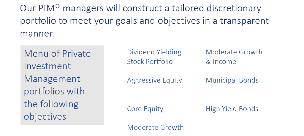 Our PIM® managers will construct a tailored discretionary portfolio to meet your goals and objectives in a transparent manner.